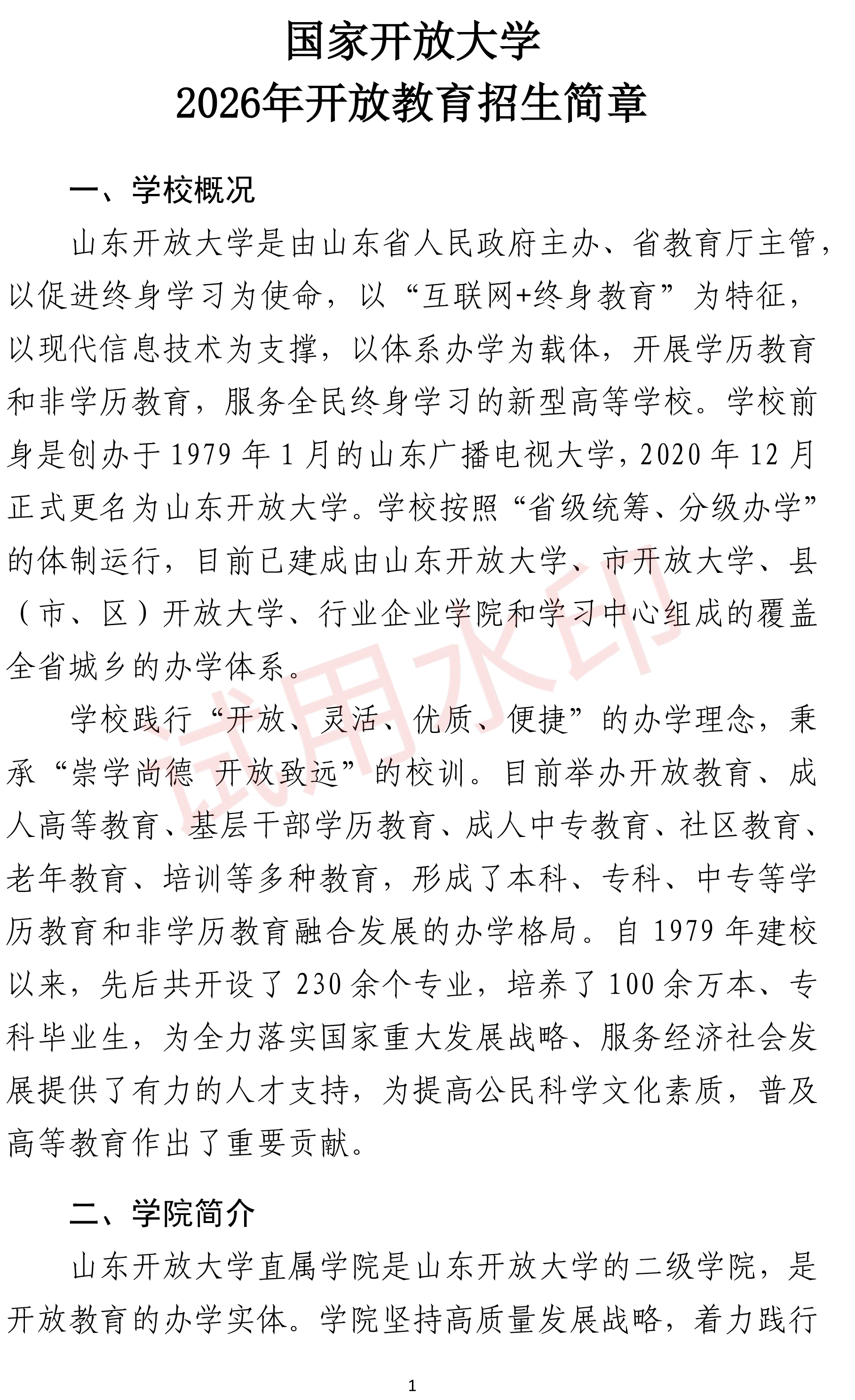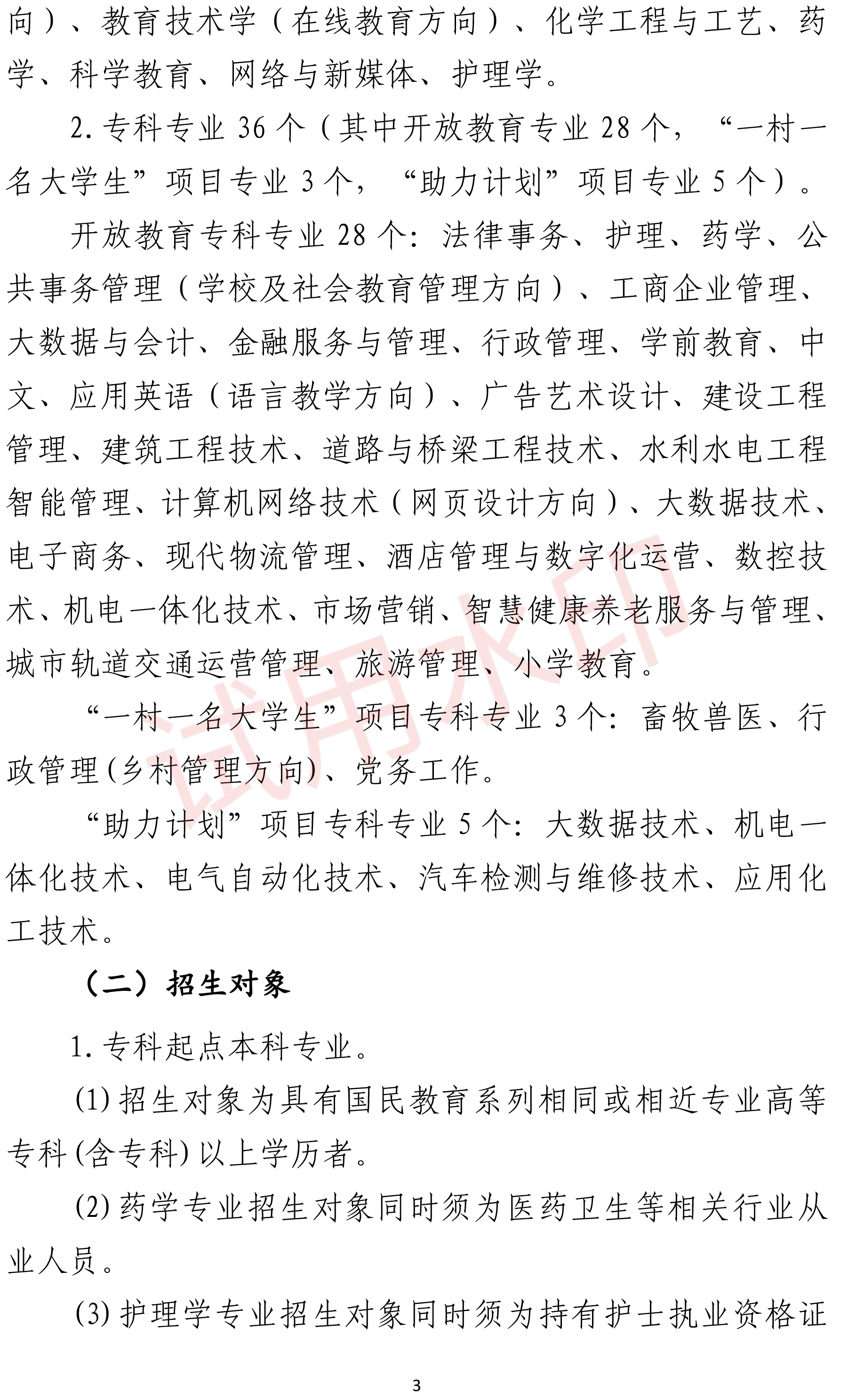 国家开放大学开放教育招生简章